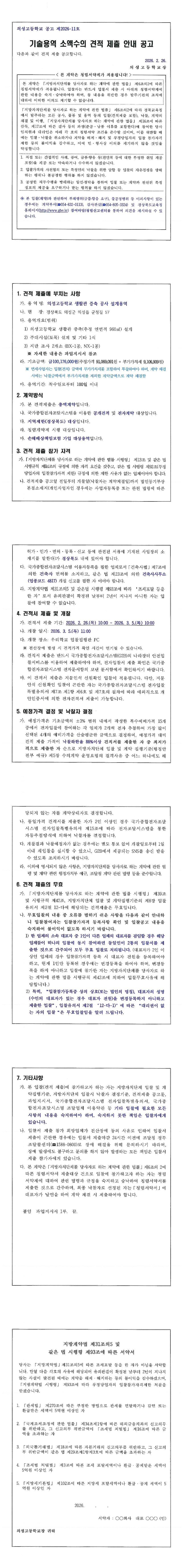 의성고등학교 생활관 증축 공사 설계용역 소액수의 견적 제출 안내 |