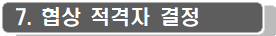 · 선순위 협상적격자와의 협상이 결렬될 경우에는 차순위 업체와 동등한 방법으로 협상을 실시합니다.