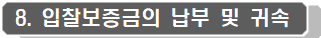 · 입찰보증금은 면제하되 입찰 참가신청서의 입찰보증금 지급확약을 하여야 하고 단, 「지방자치단체를 당사자로 하는 계약에 관한 법률」 제12조제3항 및 같은 법 시행령 제37조 및 제38조에 의한 지방자치단체 세입조치사유가 발생한 경우에는 입찰금액의 100분의 5에 해당하는 금액을 납입하여야 합니다.