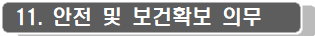 · 계약상대자는 종사자의 안전ㆍ보건상 유해 또는 위험을 방지하고 그 이용자 또는 그 밖의 사람의 생명, 신체의 안전을 위해 해당 사업의 특성 및 규모 등을 고려하여 다음과 같이 「중대재해처벌법」 제4조 및 제9조의 안전 및 보건 확보 의무사항을 이행하여야 합니다.