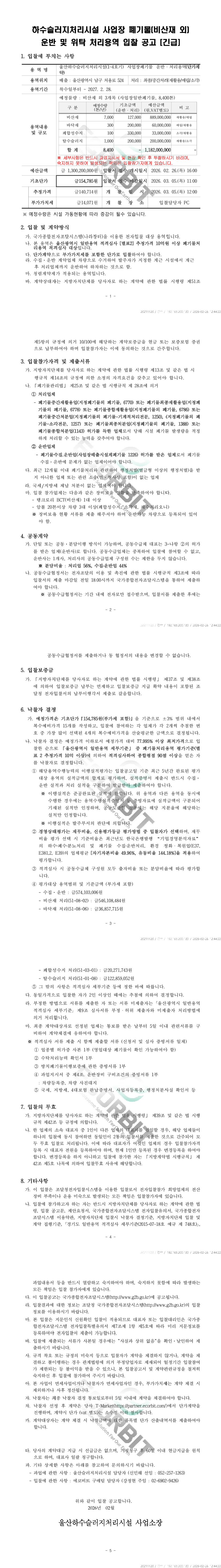 울산하수슬러지처리시설(1~4호기) 사업장폐기물 운반·처리용역(단가계약) |