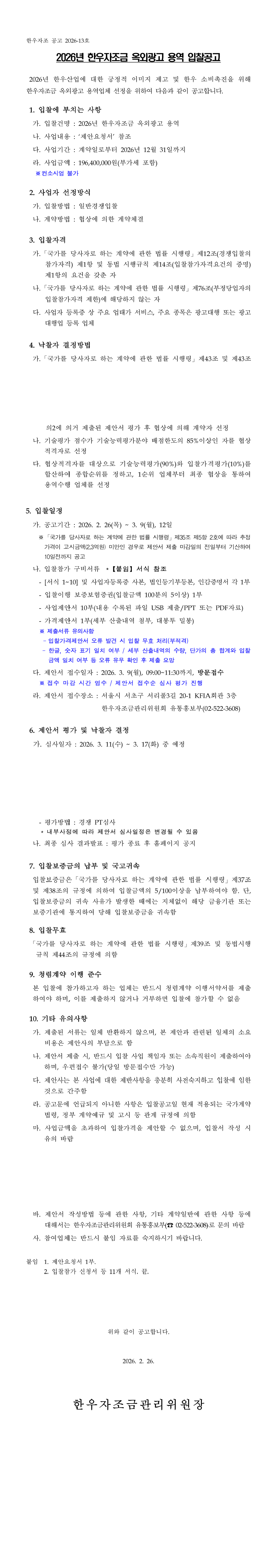 2026년 한우자조금 옥외광고 용역 입찰공고 |