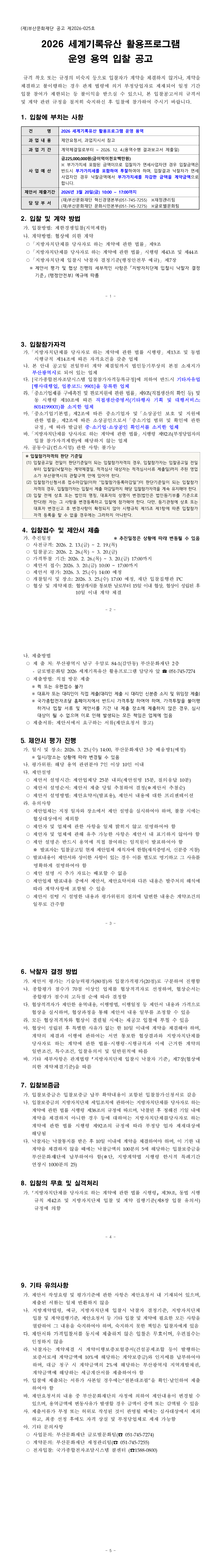2026 세계기록유산 활용프로그램 운영 용역 |