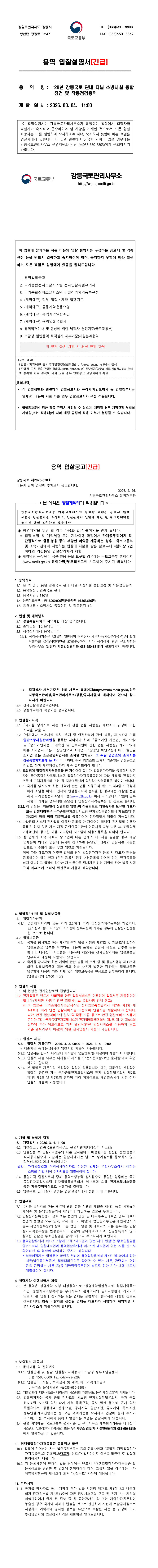 26년 강릉국토 관내 터널 소방시설 종합점검 및 작동점검용역 |