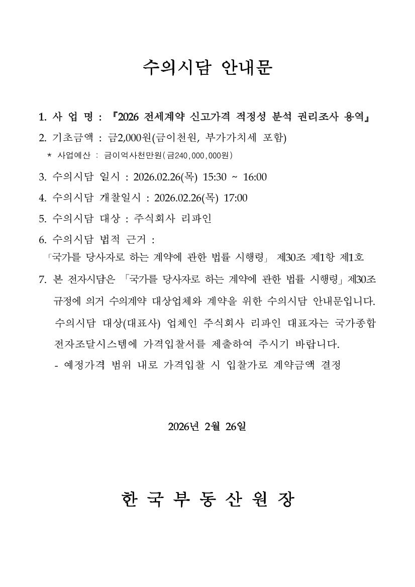 전세계약 신고가격 적정성 분석 권리조사 용역 |