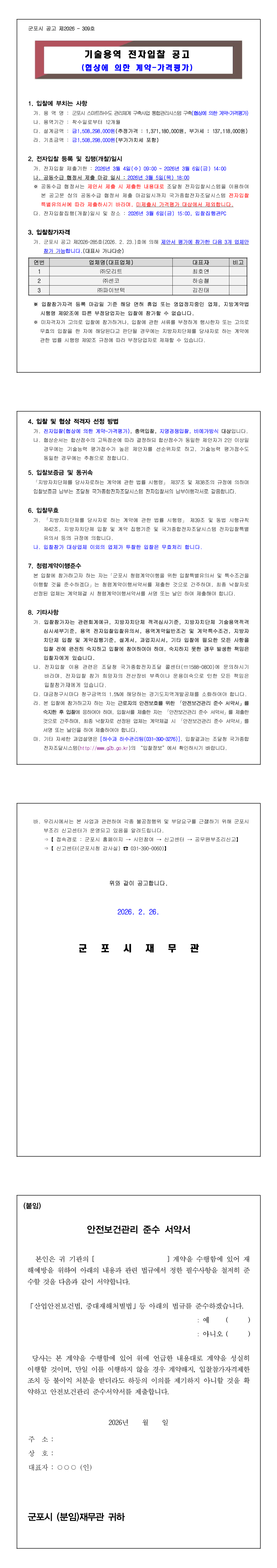 군포시 스마트 하수도 관리체계 구축사업 통합관리시스템 구축(협상에 의한 계약-가격평가) |