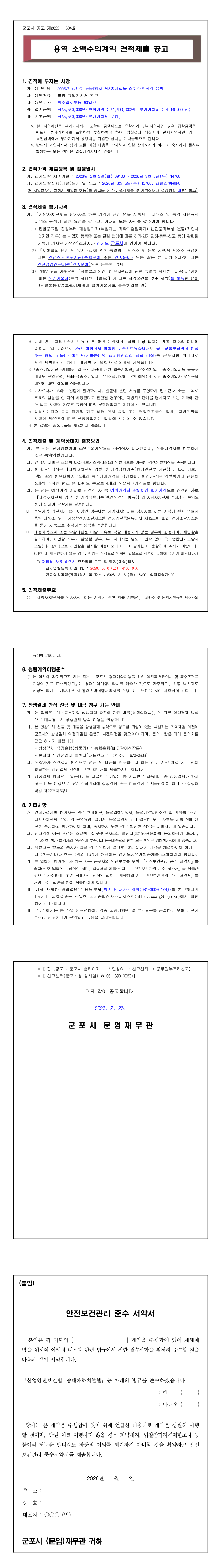 2026년 상반기 공공청사 제3종시설물 정기안전점검 용역 |
