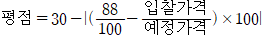 - 입찰가격이 예정가격 이하로서 100분의 96이상인 경우의 평점은 22점으로 한다.
