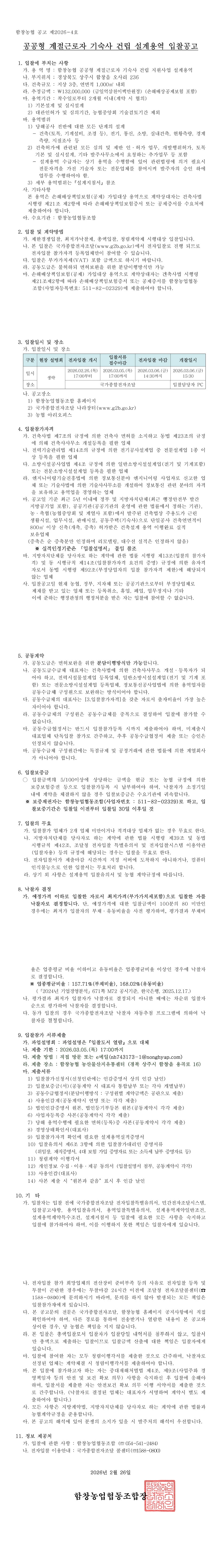 (긴급) 함창농협 공공형 계절근로자 기숙사 건립 지원사업 설계용역 입찰 공고 |