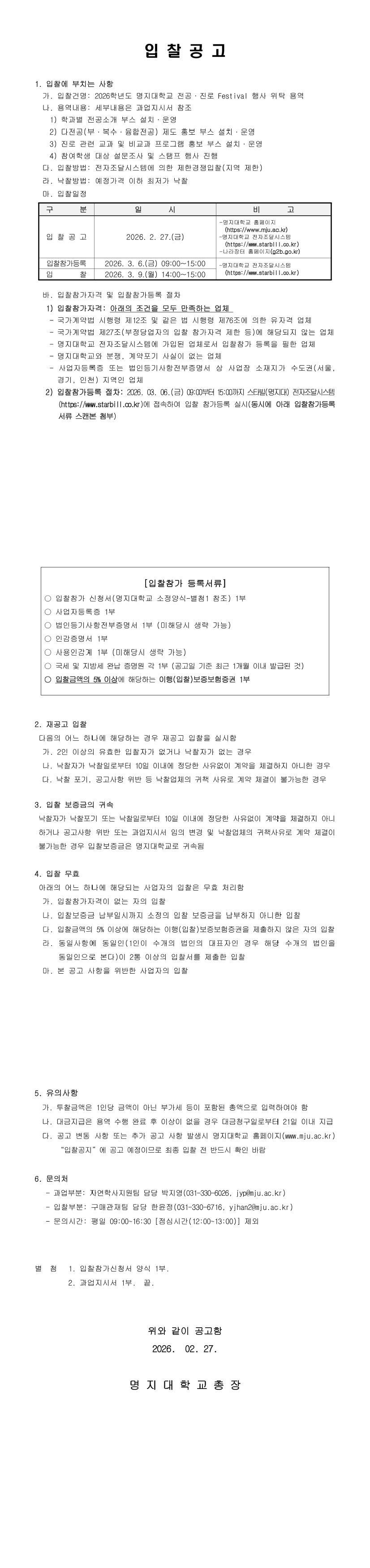 2026학년도 명지대학교 전공·진로 Festival 행사 위탁 용역 |
