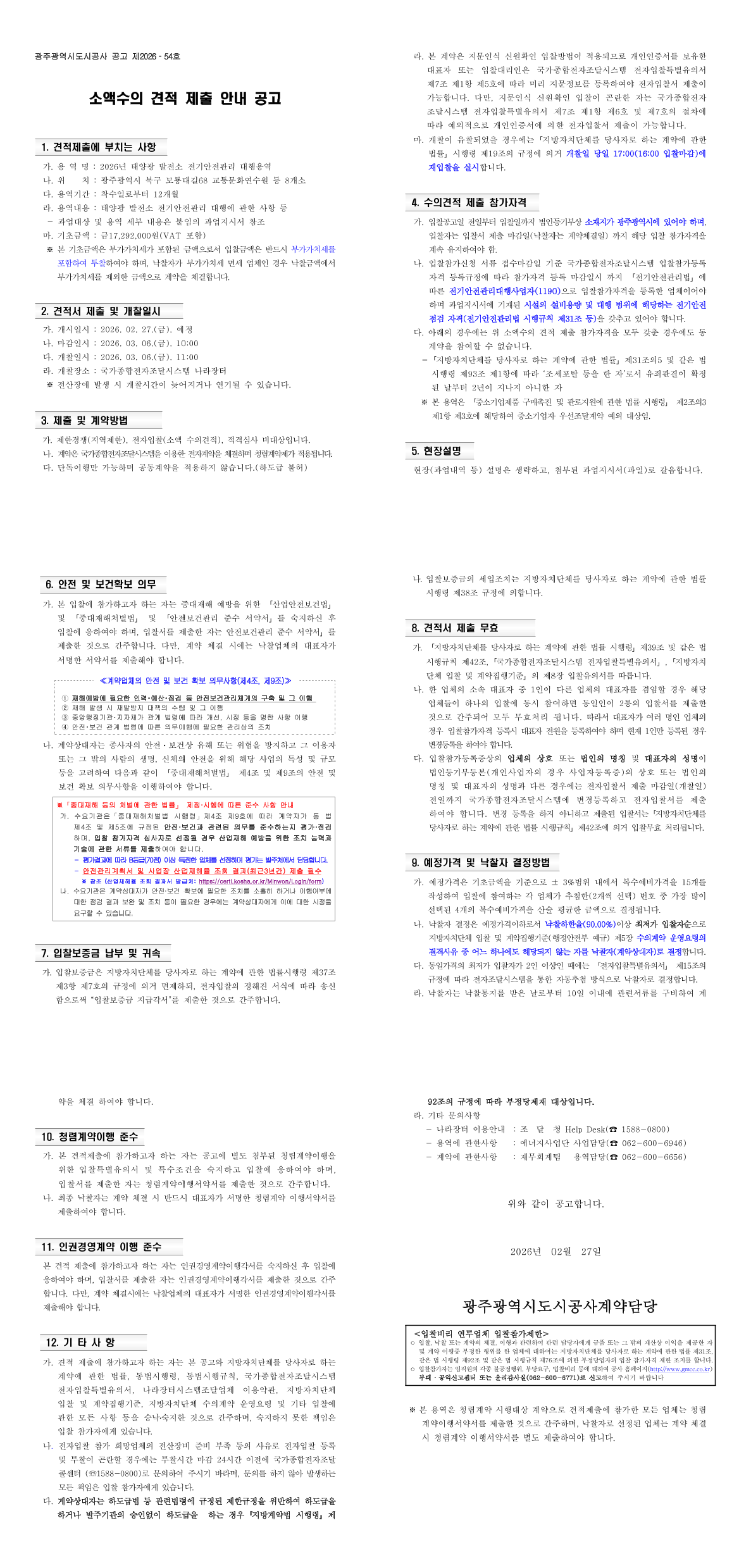 2026년 태양광발전소 전기안전관리 대행 용역 소액수의 견적 공고 |