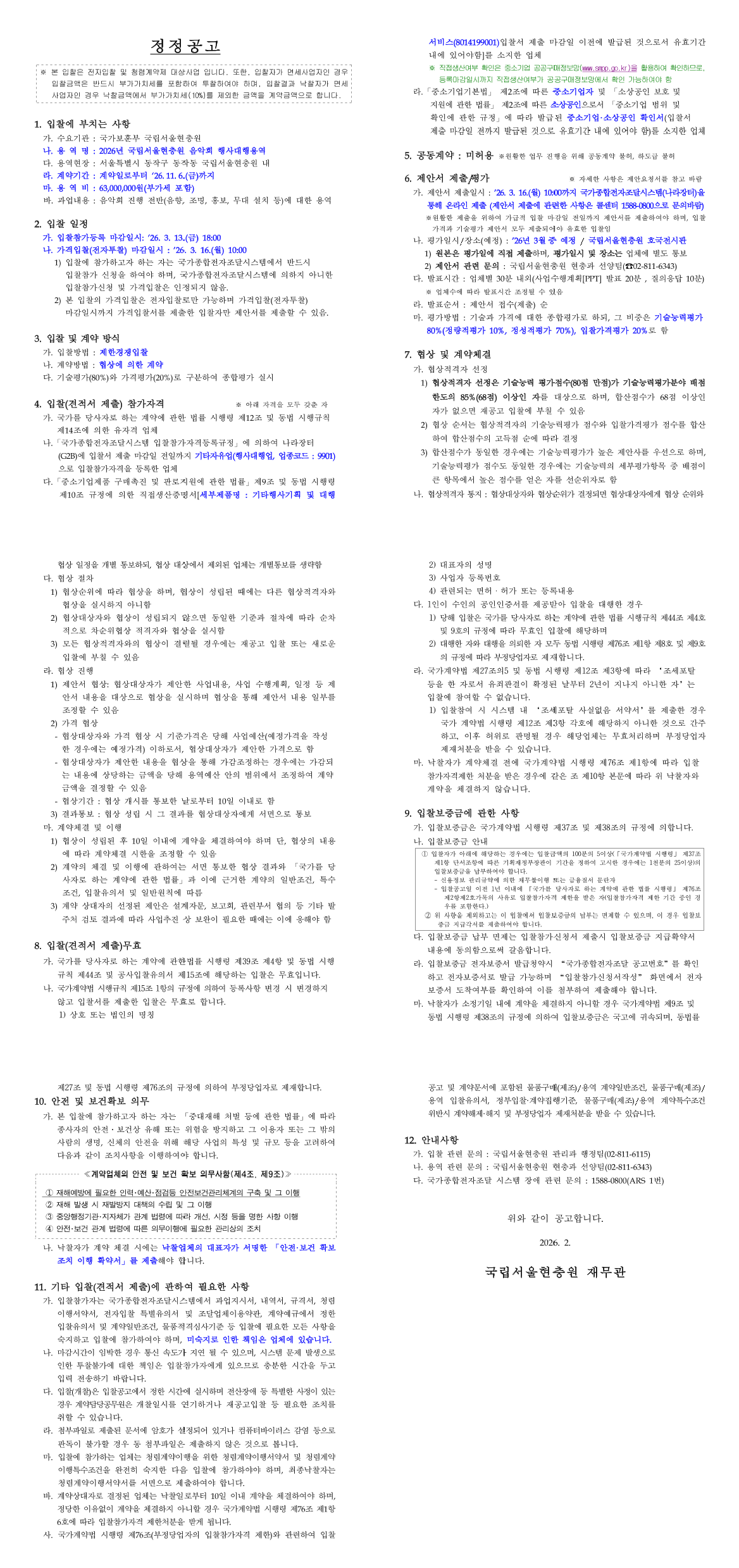 2026년 국립서울현충원 음악회 행사 대행 용역 |