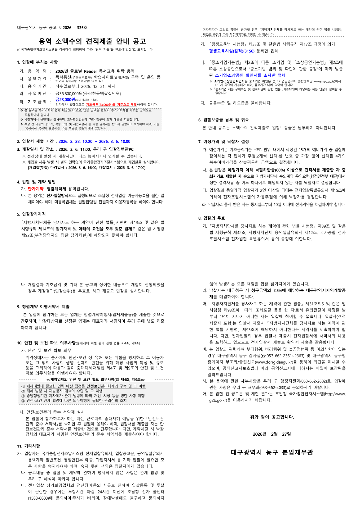 2026년 글로벌 Reader 독서교육 위탁 용역 |
