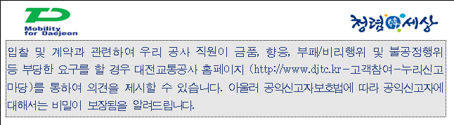 - 대전교통공사 홈페이지(www.djtc.kr) 공고 (공사소식→계약정보→조달청입찰정보)