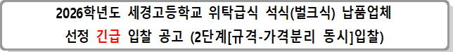 2026학년도 세경고등학교 위탁급식 석식(벌크식) 납품업체 선정 긴급 공고