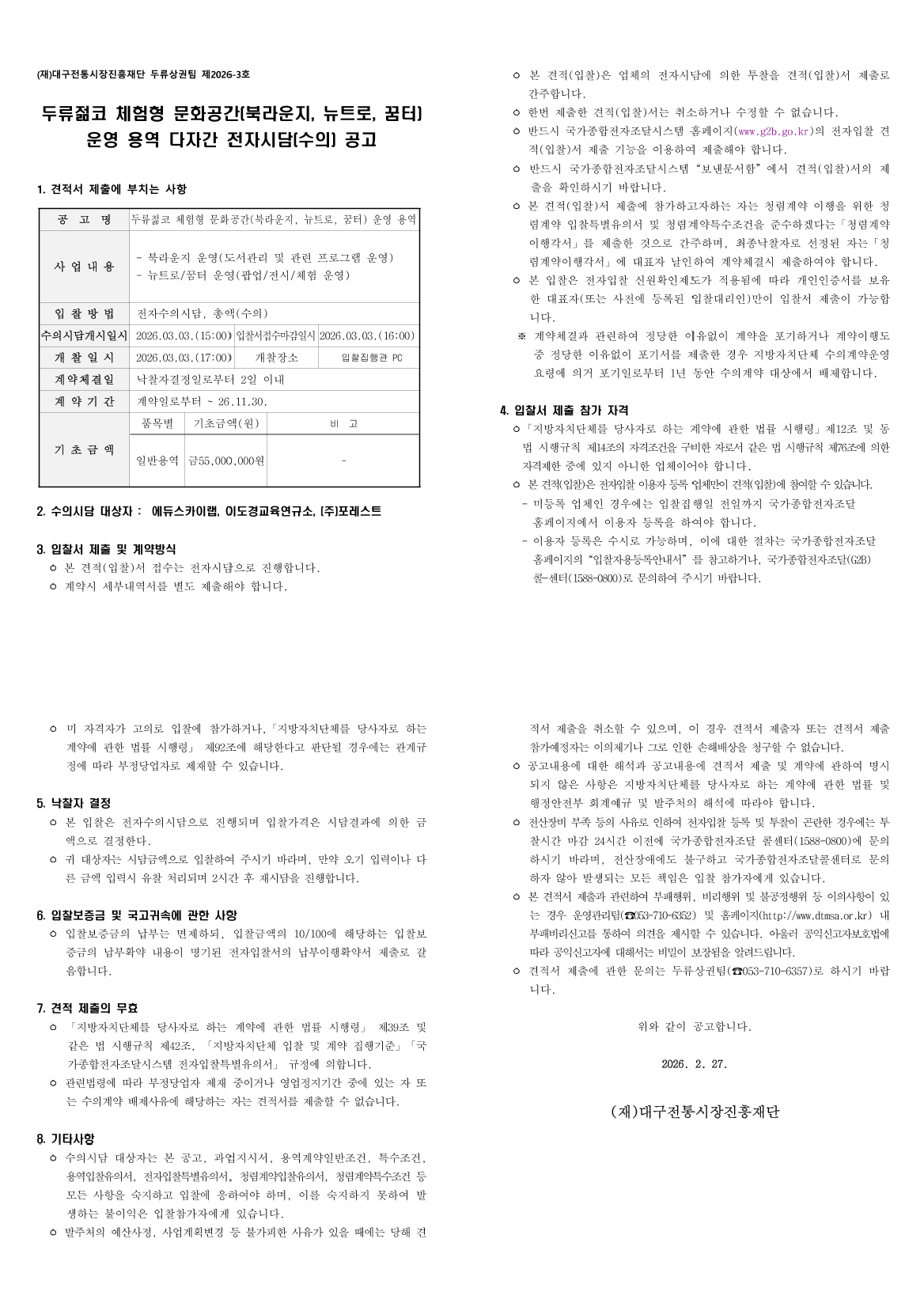 두류젊코 체험형 문화공간(북라운지, 뉴트로, 꿈터) 운영 용역(다자간 수의시담) |