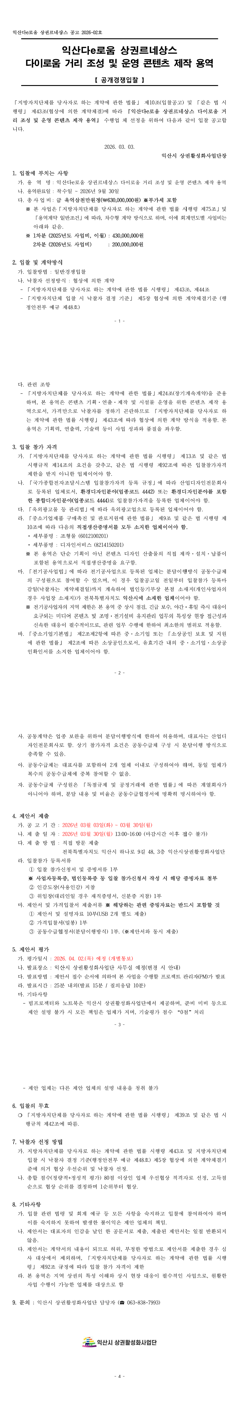 익산다e로움 상권르네상스 다이로움 거리 조성 및 운영 콘텐츠 제작 용역 |