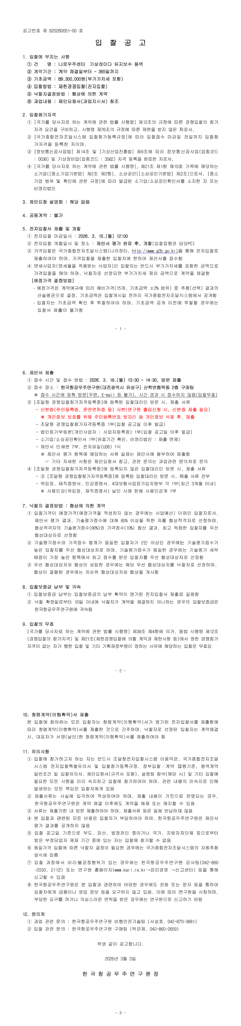 나로우주센터 기상레이다 유지보수용역 |