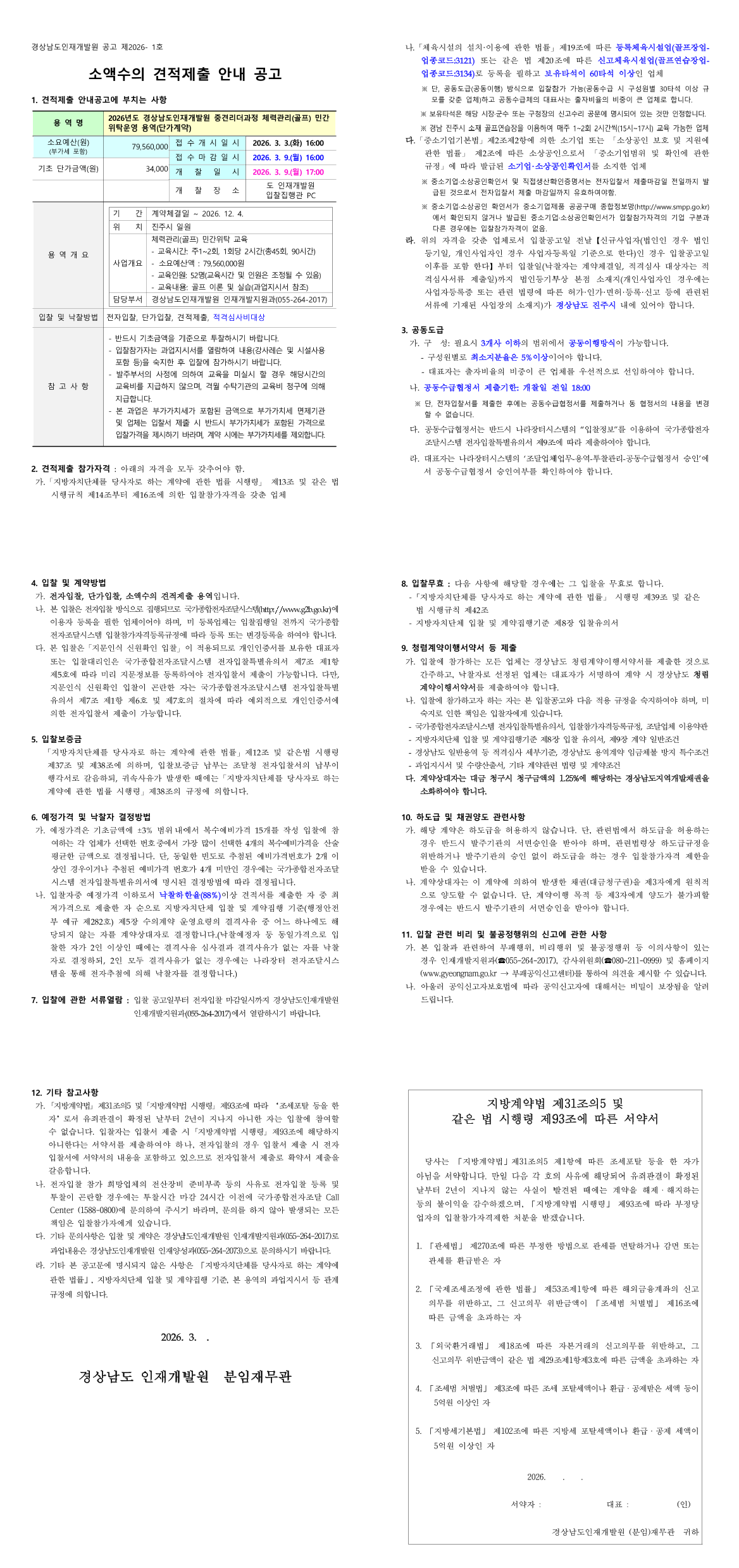 2026년도 경상남도인재개발원 중견리더과정 체력관리(골프) 민간 위탁운영 용역(단가계약) |