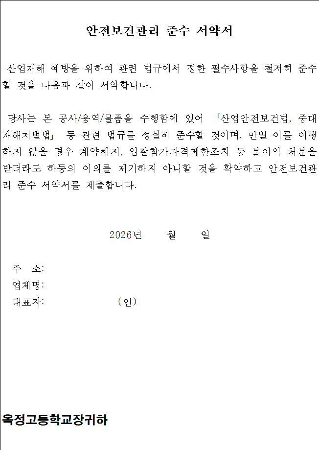 위와 같이 계약조건에 따라 2026학년도 옥정고등학교 현장체험학습(숙박형) 위탁용역에 필요한