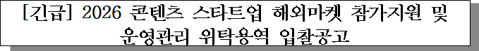 ㅇ 입찰건명 : 2026 콘텐츠 스타트업 해외마켓 참가지원 및 운영관리