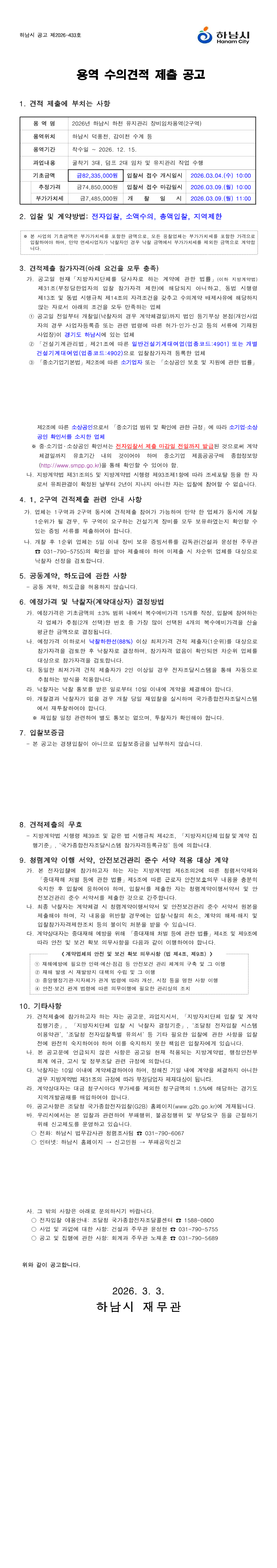 2026년 하남시 하천 유지관리 장비임차용역(2구역) |