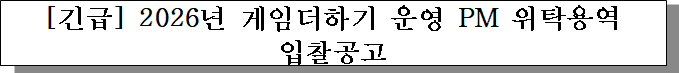 ㅇ 입찰건명 : [긴급] 2026년 게임더하기 운영 PM 위탁용역