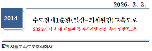 2026년 터널 내 제트팬 등 부착시설 점검 용역