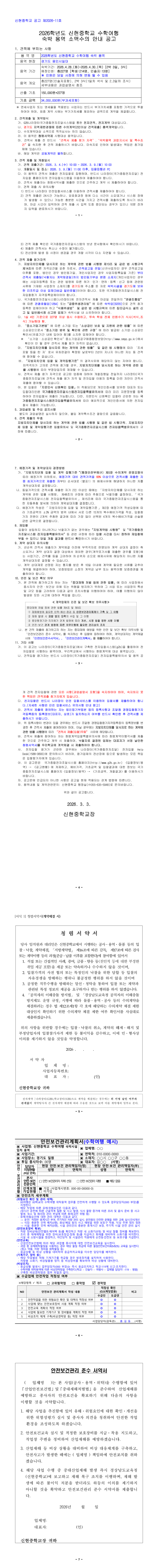2026학년도 신현중학교 수학여행 숙박 용역 소액수의 안내 공고 |