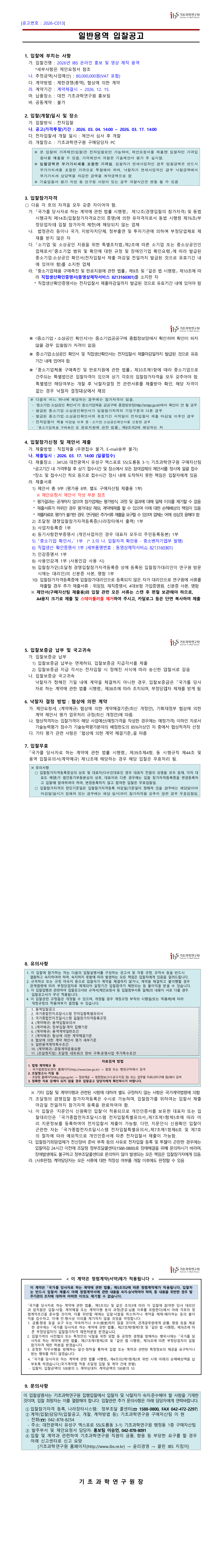 2026년 IBS 온라인 홍보 및 영상 제작 용역 |