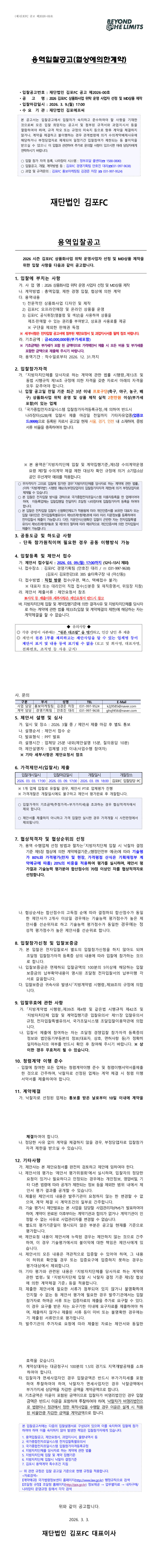 2026 김포FC 상품화사업 위탁 운영 사업자 선정 및 상품 제작 |