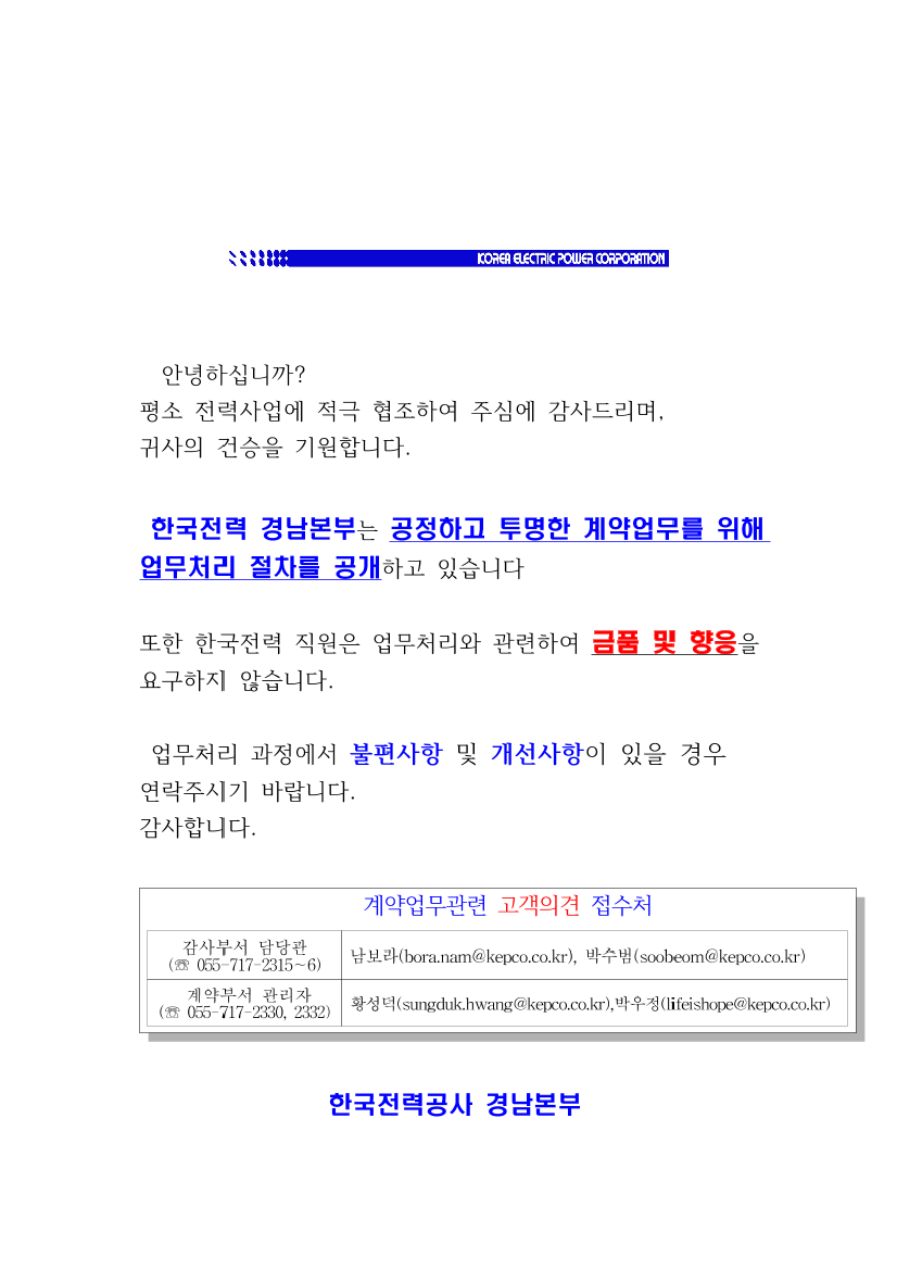 한국전력공사 경남본부 기획관리실 재무자재부 |