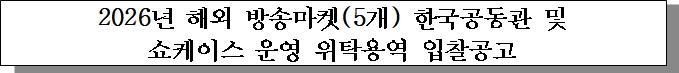 ㅇ 입찰건명 : 2026년 해외 방송마켓(5개) 한국공동관 및 쇼케이스 운영 위탁용역 입찰공고