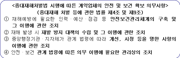 가. 입찰에 참가한 자는 중대재해처벌법 시행에 따른 안전‧보건 확보 의무사항을 숙지하여야 합니다.