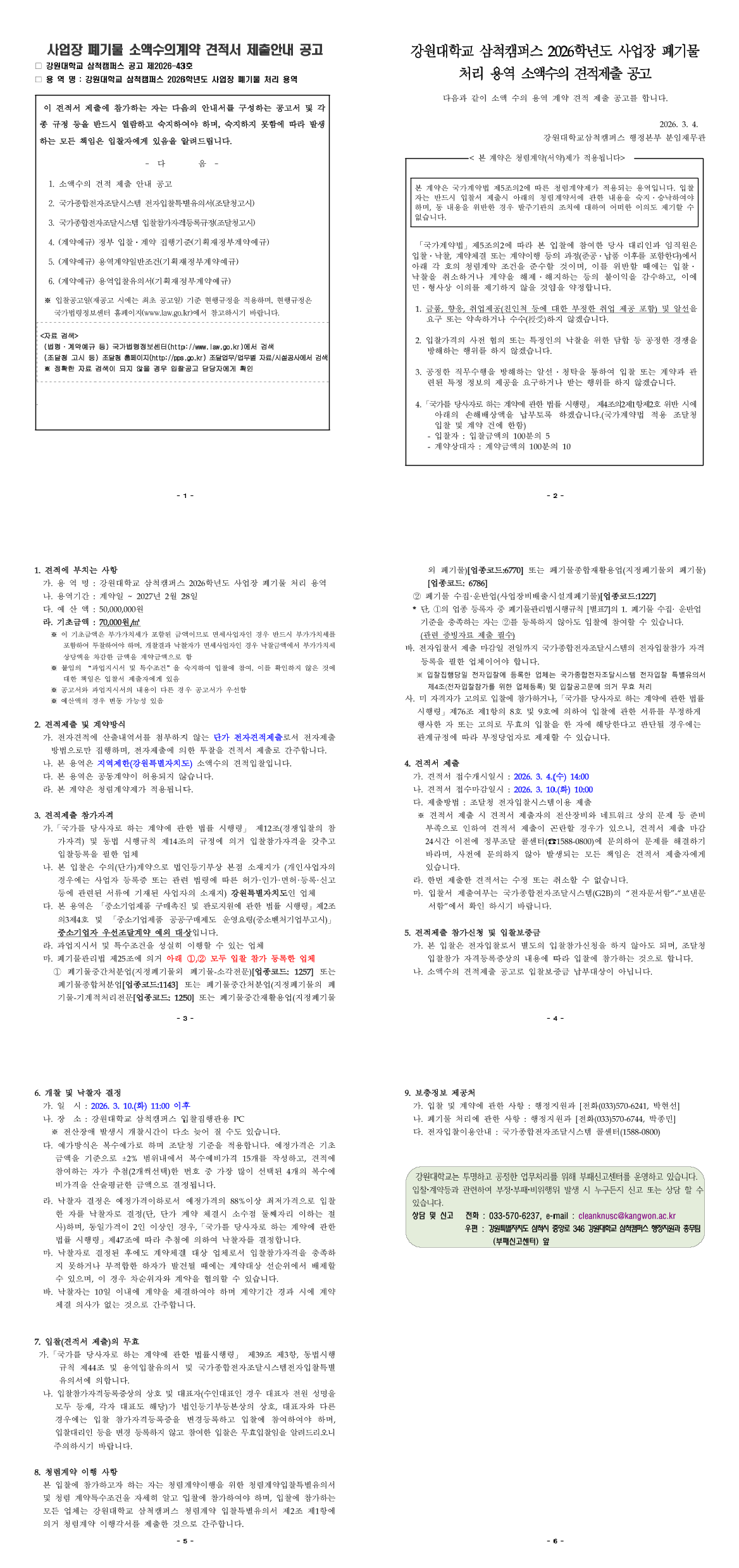 강원대학교 삼척캠퍼스 2026학년도 사업장 폐기물 처리 용역 |