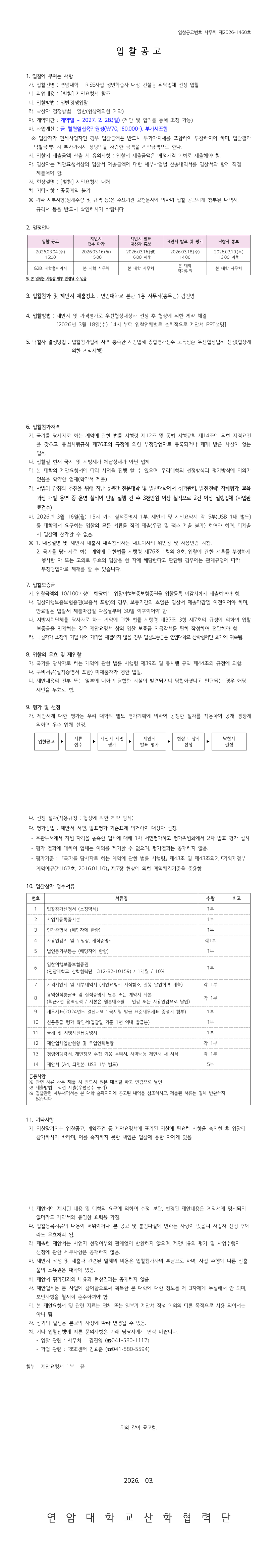 연암대학교 RISE사업 성인학습자 대상 컨설팅 위탁업체 선정 입찰 |
