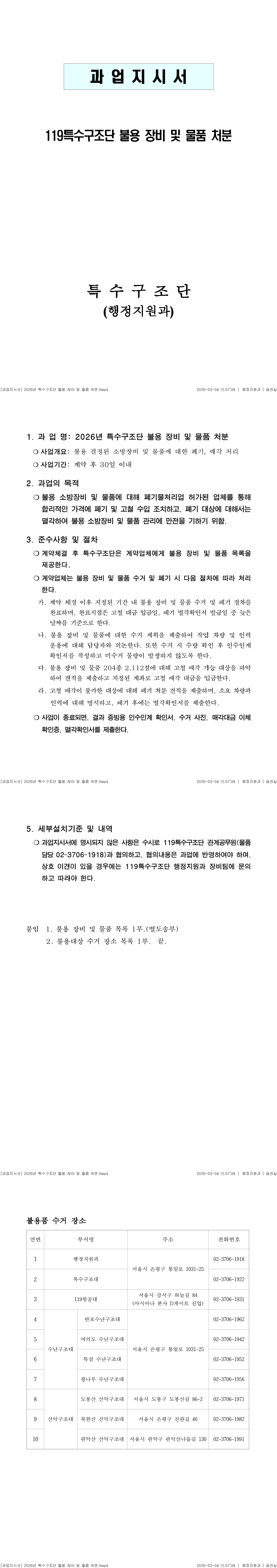 2026년 불용 소방장비 및 물품 폐기·처분 용역 |