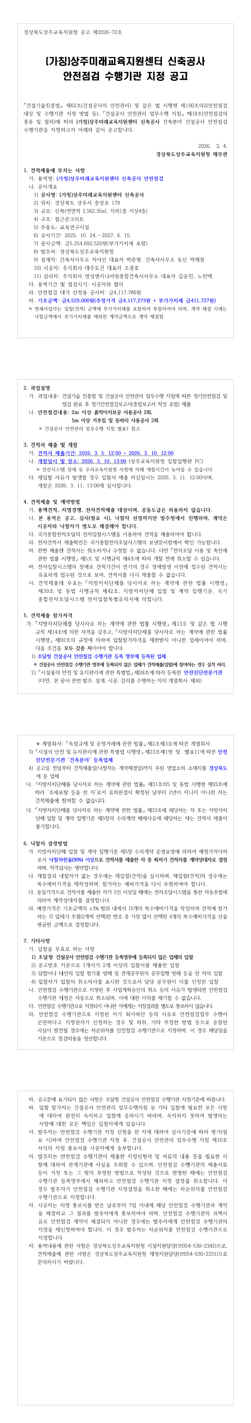 (가칭)상주미래교육지원센터 신축공사 안전점검 수행기관 지정 공고 |