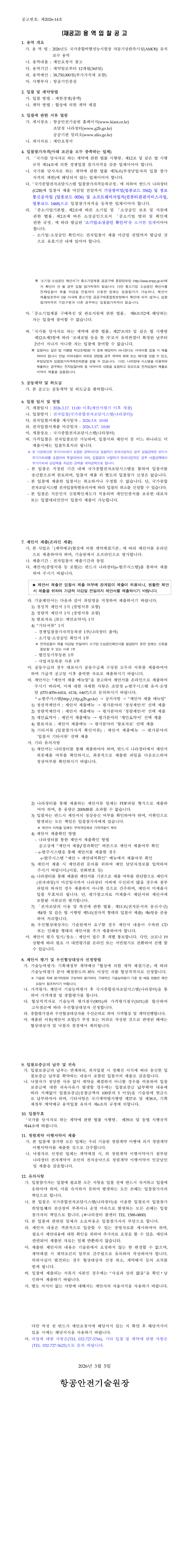 2026년도 국가종합비행성능시험장 자동기상관측시설(AMOS) 유지보수 용역 |