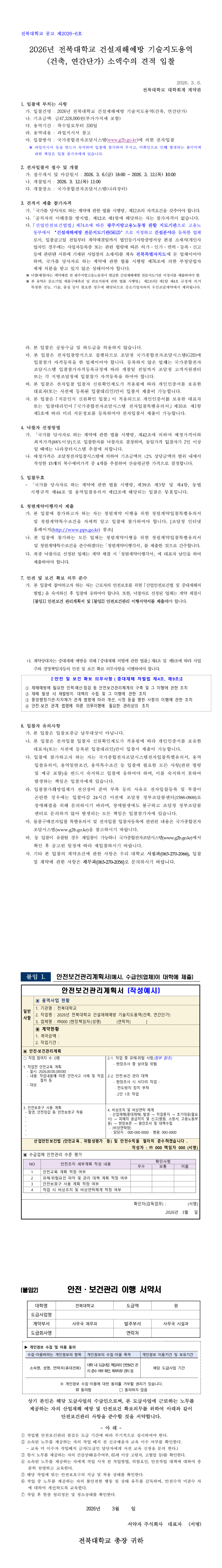 2026년 전북대학교 건설재해예방 기술지도용역(건축, 연간단가) |