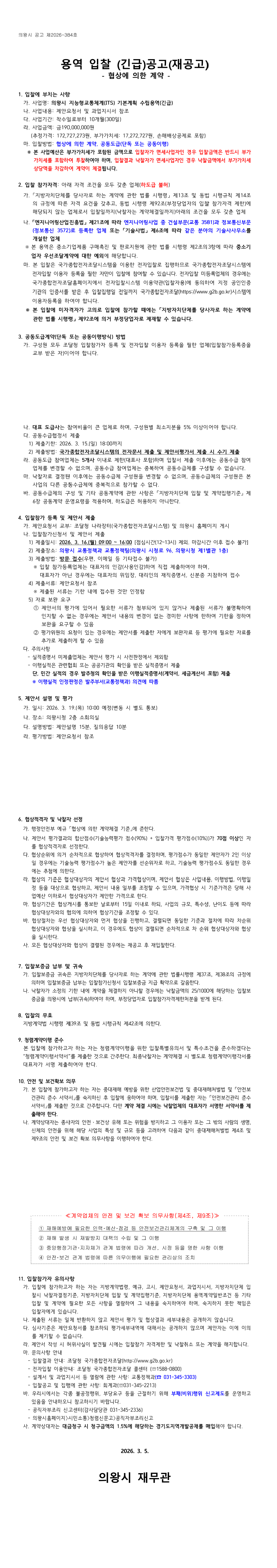 의왕시 지능형교통체계(ITS) 기본계획 수립용역(협상에 의한 계약) |