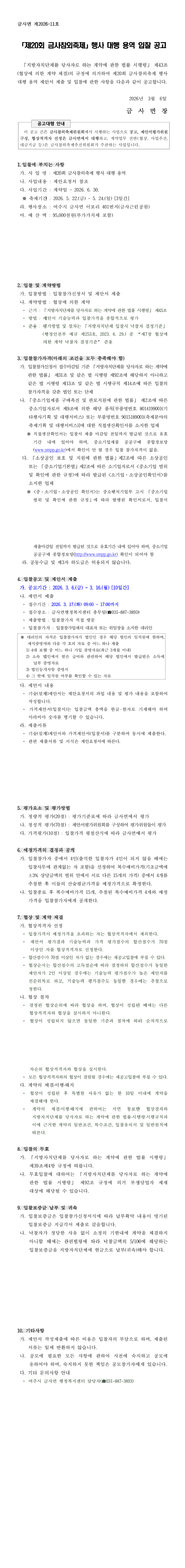 제20회 금사참외축제 행사 대행 용역 |