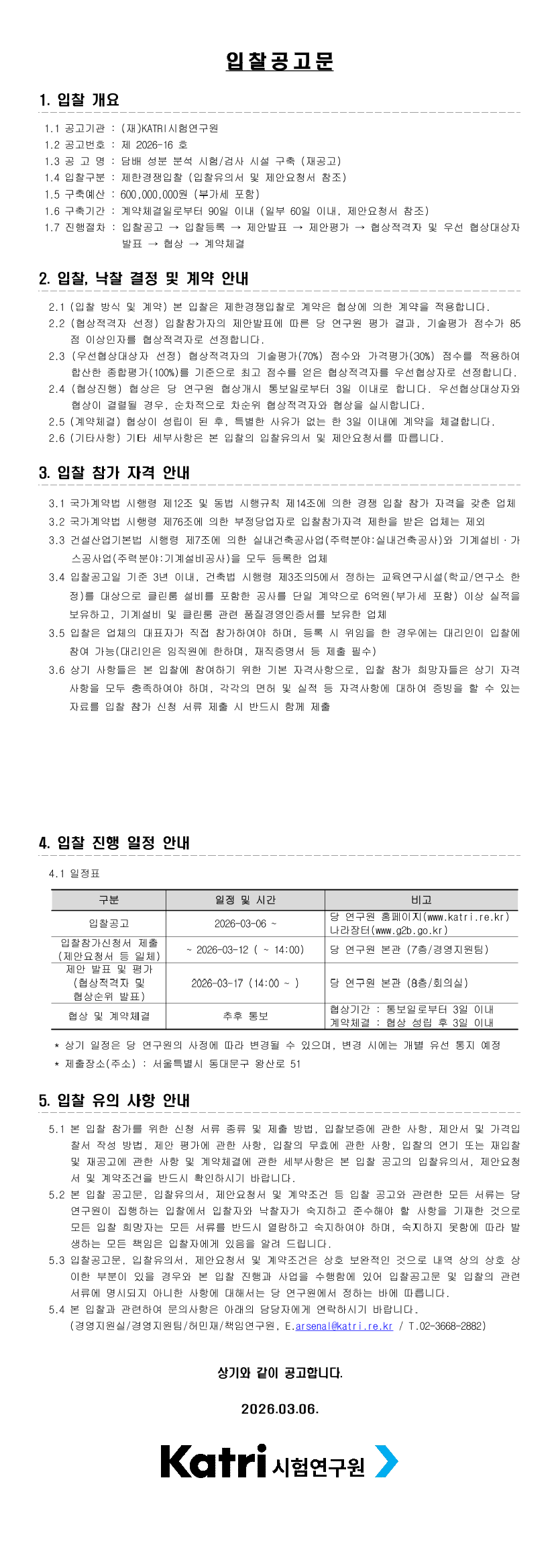 [KATRI시험연구원/오송] 담배 성분 분석 시험/검사 시설 구축 입찰 (재공고) |