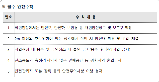 고위험 작업 사전 점검 내용