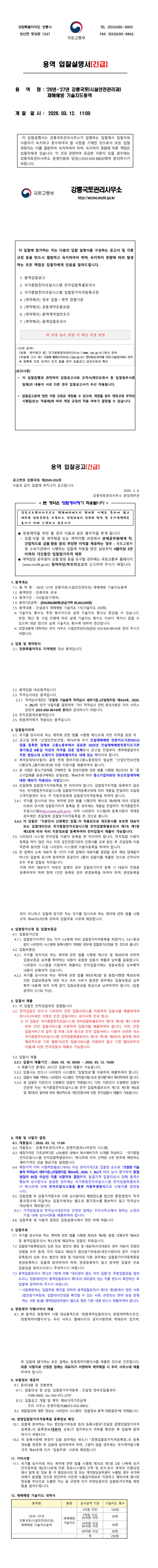 26년~27년 강릉국토(시설안전관리과) 재해예방 기술지도용역 |