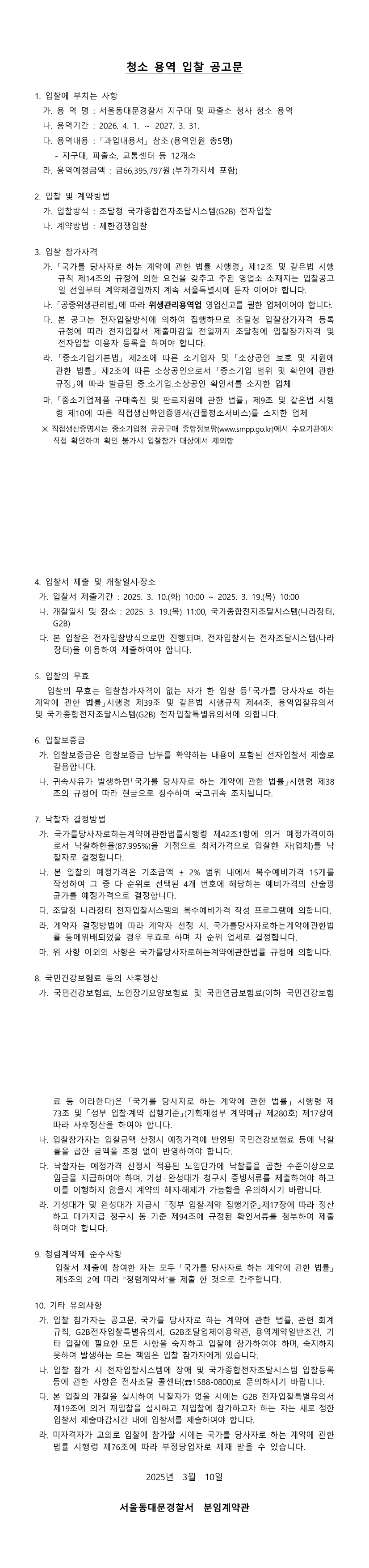 2026 서울동대문경찰서 지역관서 청소용역 |