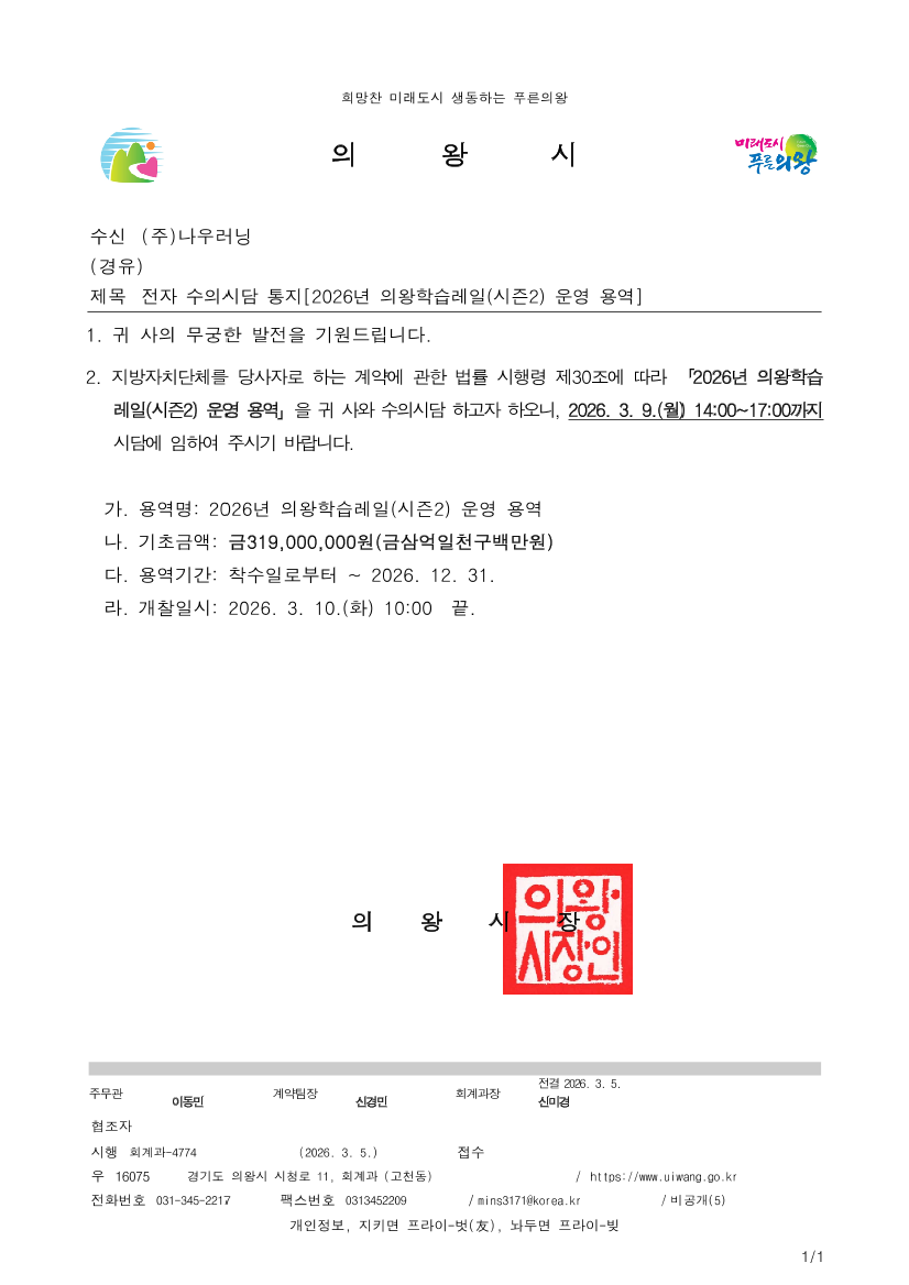 2026년 의왕학습레일(시즌2) 운영 용역 |