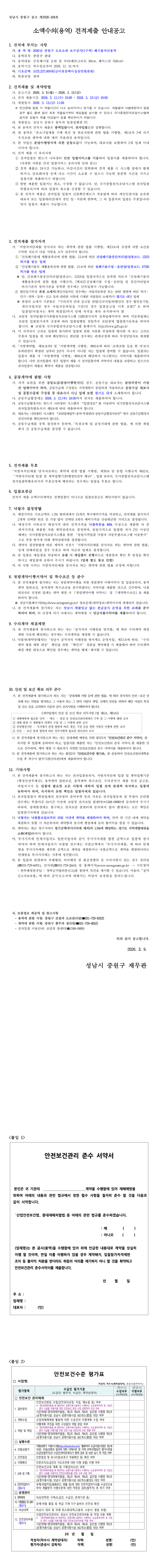 2026년 중원구 도로소파 보수공사(1구역) 폐기물처리용역 |