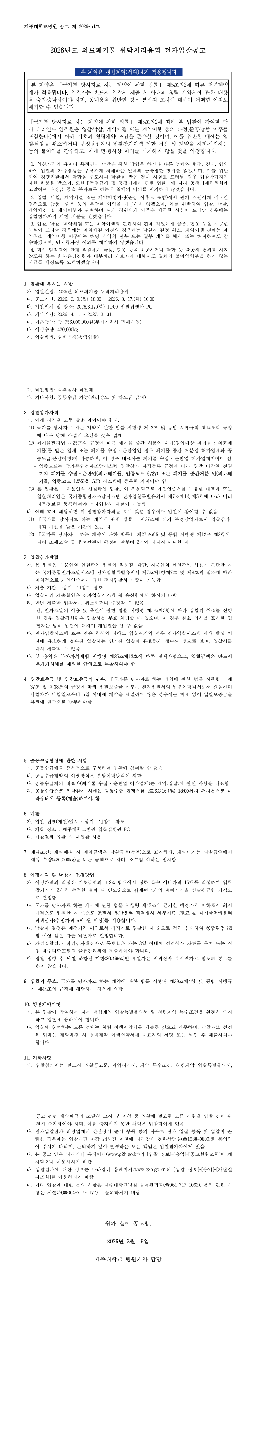 2026년도 제주대학교병원 의료폐기물 위탁처리용역 |