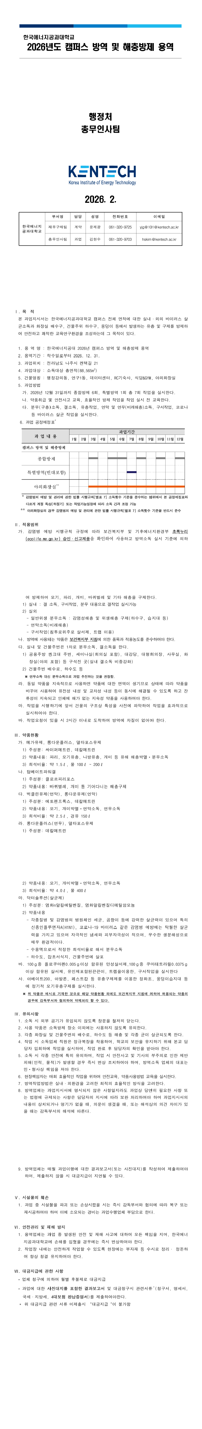 한국에너지공대 2026년도 KENTECH 캠퍼스 방역 및 해충방제 카탈로그 계약 |